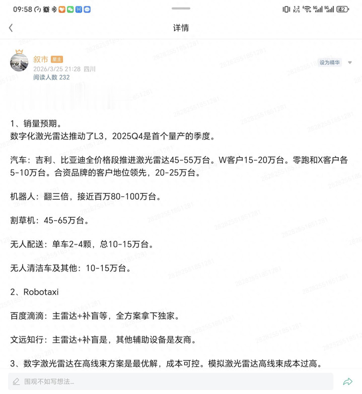 你要是分享速腾聚创激光雷达的前景,朋友通过AI了解了该行业,但下手的时候,那天看到禾赛和图达通跌的更多,买了后者。