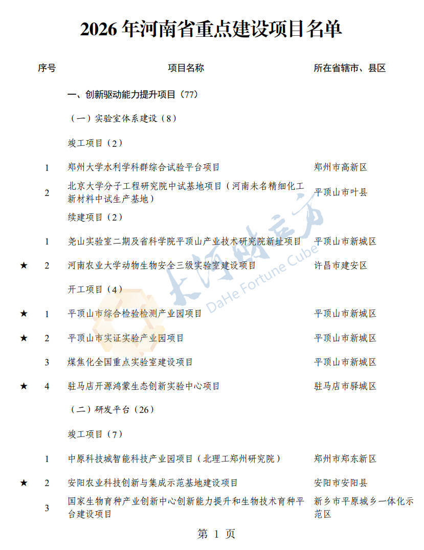 【大河财立方消息】4月2日消息,河南省发展和改革委员会日前发布2026年河南省重点建设项目名单。